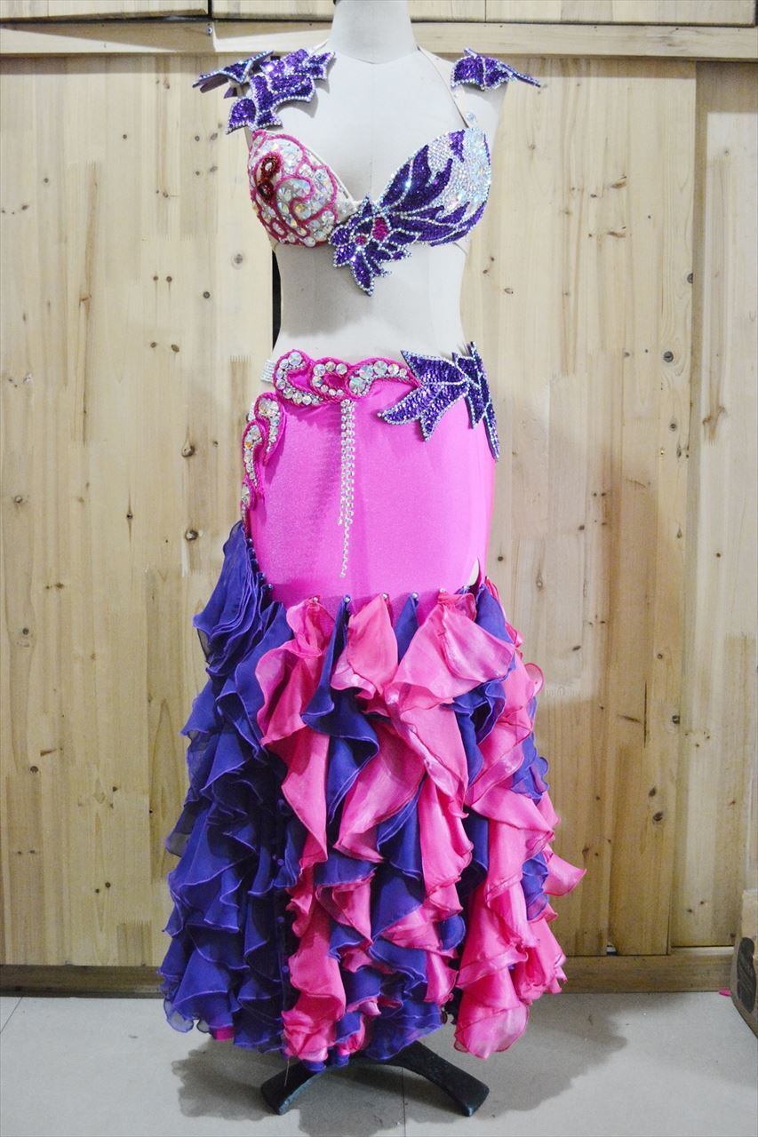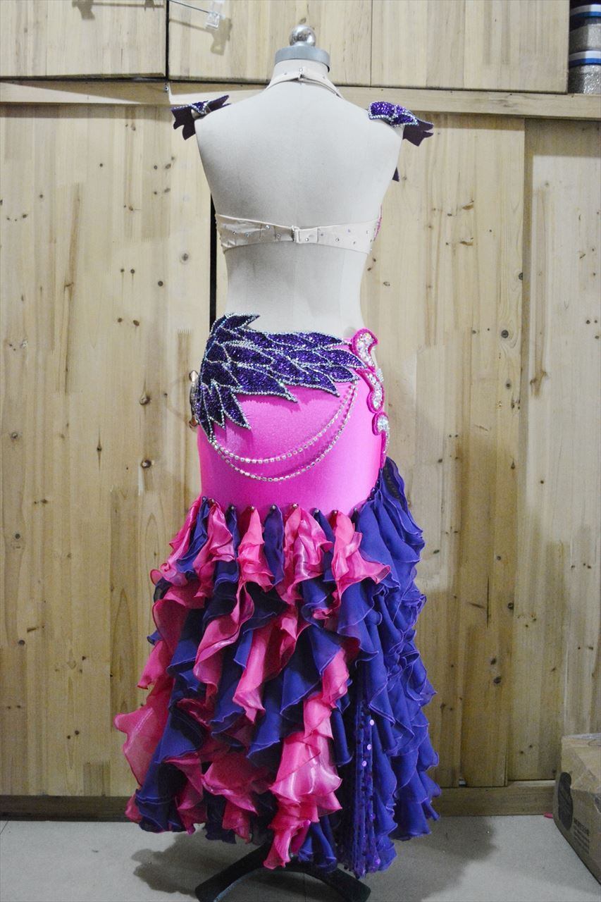 ベルトと一体型のスカートは片側開きデザインで、2色使いのフリルがとってもゴージャス。