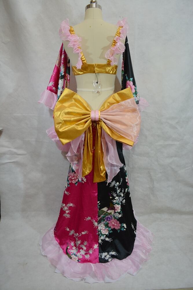 袖は着物のようなデザインにしました。踊りやすいよう、短めかつ肩につながっているため、非常に軽やかなまま、美しいシルエットを保ちます。